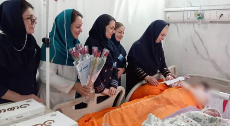 اهدای شاخه گل و پیام تقدیر و حمایت از جوانی جمعیت و تاکید به اهمیت تغذیه با شیر مادر با حضور مدیر محترم پرستاری بیمارستان و هیات همراه به مادران عزیز در هفته ترویج تغذیه با شیر مادر مرداد ماه ۱۴۰۴